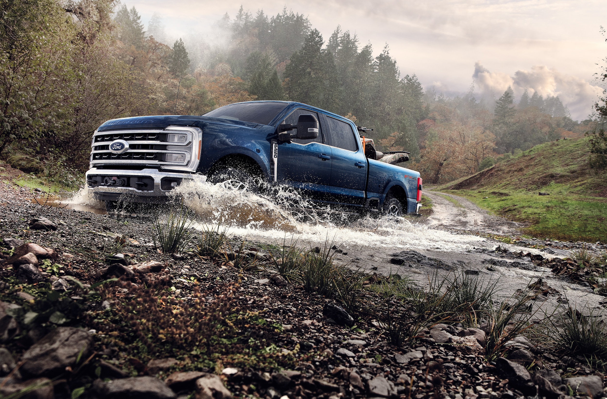 The new LARIAT has Class V towing equipment which includes a trailer sway control. It also has automatic locking hubs, which will engage when the truck goes into four-wheel drive. The standard HD shock absorbers keep the truck stable by absorbing the impact from road irregularities, and the front anti-roll bars improve your truck's cornering capability by distributing the weight evenly.